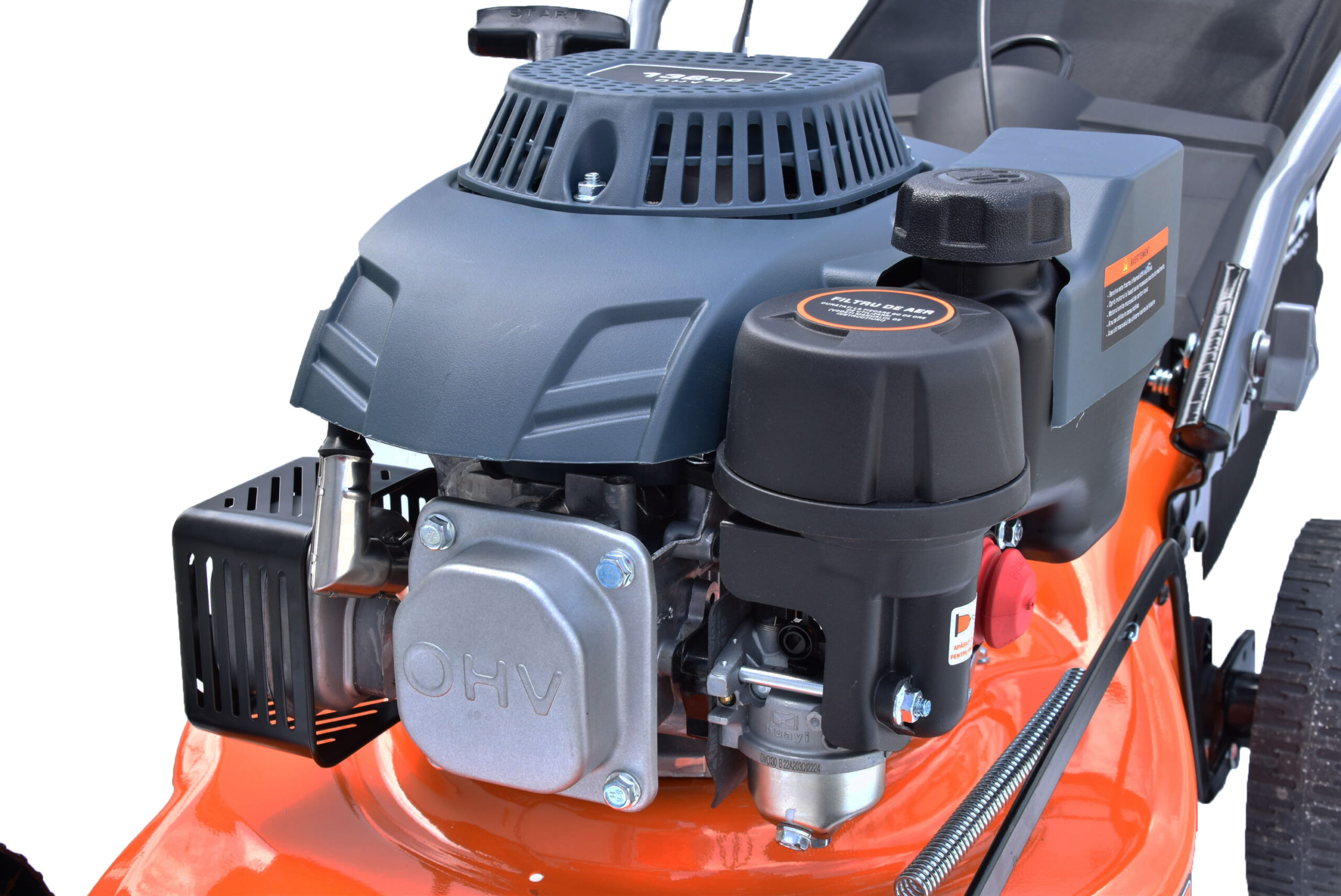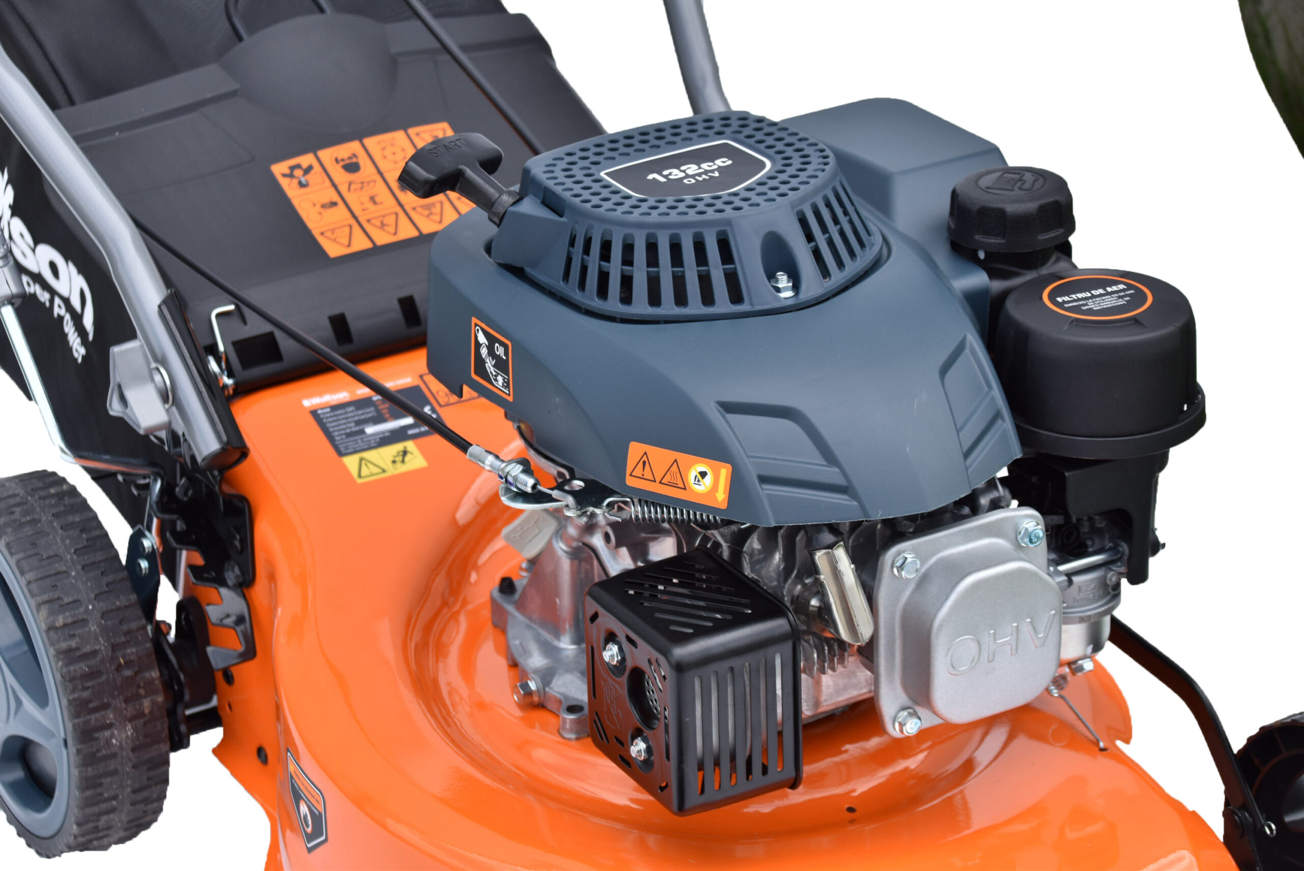Motorul cu o putere de 3.5CP ofera forta necesara pentru a face fata taierii iarbei intr-un mod eficient si rapid. Sistemul de autopropulsie adauga confort utilizarii, reducand efortul necesar pentru impingerea masinii pe gazon.